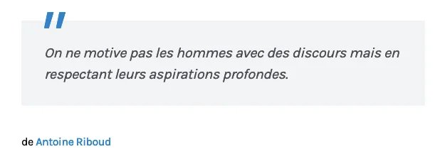 Antoine Riboud l’avait bien compris. Dans son discours de Marseille intitulé « Croissance et Qualité de vie » il concluait le 25 octobre 1972 par : « Conduisons nos entreprises autant avec le cœur qu’avec la tête, et n’oublions pas que si les ressources de la terre ont des limites, celles de l’Homme sont infinies s’il se sent motivé »